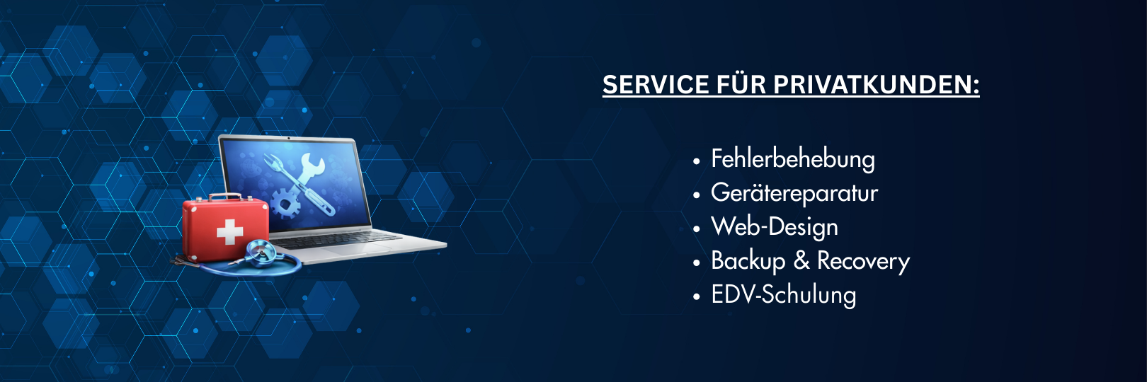 Alle Dienste rund um Ihren Computer zu fairen Preisen. Unsere Aufgabe ist es Ihre Wünsche schnell und zuverlässig zu erfüllen. Ob Hardware oder Softwareprobleme, die Kundenbetreuung steht bei uns an oberster Stelle!